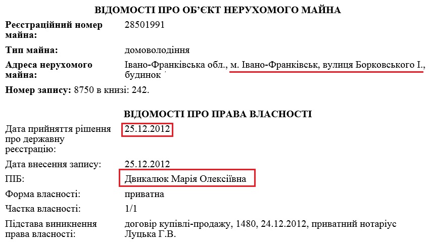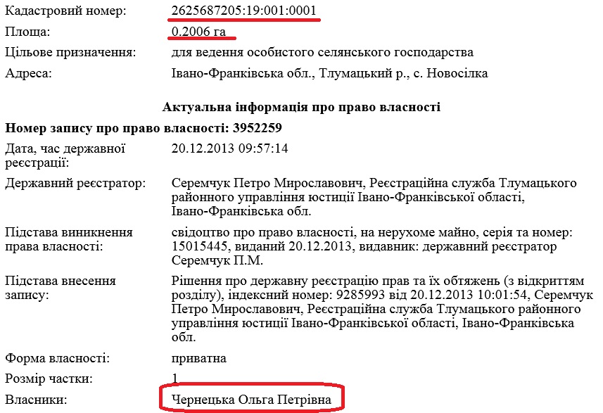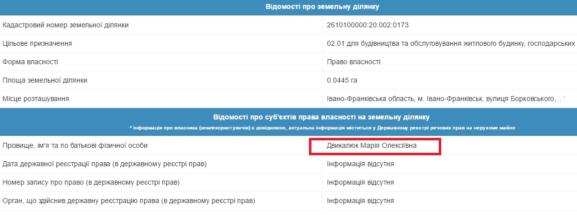 Однак, згідно з публічною кадастровою картою, матері його дружини Марії Двикалюк в селі Новосілка належить два наділи площами 0,15 та 0,1835 га.