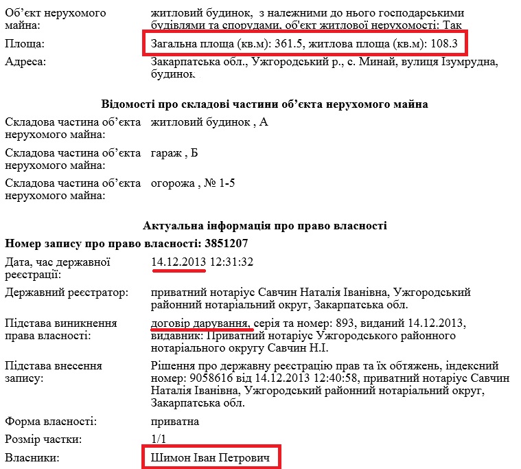 Згідно з реєстром речових прав на нерухоме майно, Іван Шимон є власником будинку у селі Минай, що у 10 хвилинах їзди від Ужгорода, з 2013 року. Будинок подарувала мама прокурора.