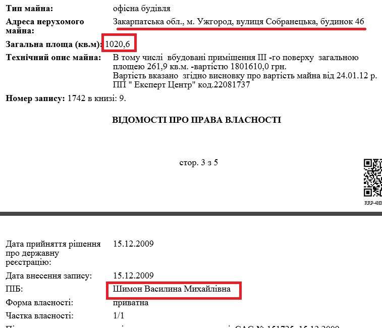 Матері Івана Шимона Василині, яка подарувала будинок прокуророві, з 2012 року також належить зерносклад площею 618,4 кв. м в селі Оноківці та з 2009 року офіси площею 1020,6 кв. м на вул. Собранецькій в Ужгороді.