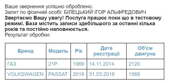 Про сьогоднішній майновий стан екс-законника відомо небагато. Однак, згідно з даними реєстру МВС, у березні 2016 року він зареєстрував право власності на новенький Volkswagen Passat 2016 р.в. середньою вартістю 1,1 млн грн. Схоже, навіть будучи люстрованим, Білецький може дозволити собі дорогі покупки.