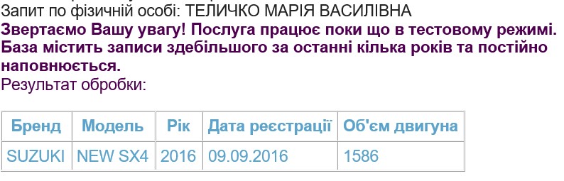 Новий автомобіль у вересні цього року придбала і дружина заступника начальника відділу Прокуратури Львівської області Олександра Теличка – кросовер Suzuki New SX4.