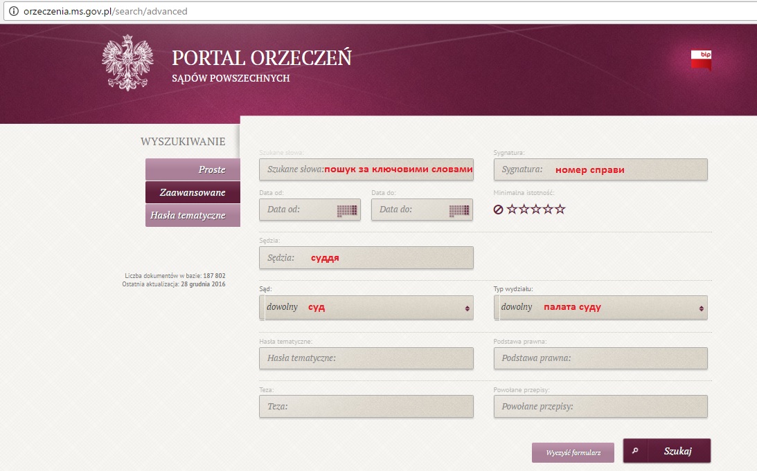 У Польщі, як і в Україні, можна відслідковувати перебіг судових тяганин.