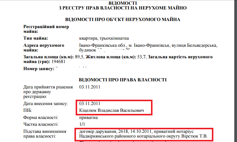 Двома квартирами та будинком в передмісті Івано-Франківська володіє родина заступника начальника управління Нацполіції Василя Кіцелюка.