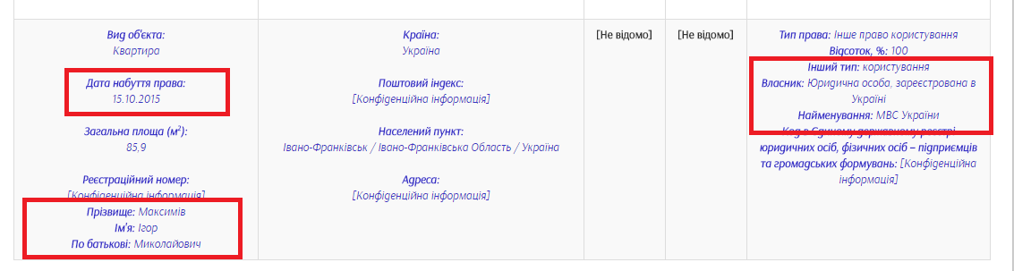 Ігор Максимів, заступник начальника та керівник слідчого управління, задекларував три квартири. Щоправда, жодна з них йому не належить на правах власності. Частка однієї належить його дружині Людмилі. Ще однією квартирою Максимів користується. В користування йому її надала його рідна сестра. Щоправда, ще в 2011 році частина цього помешкання належала головному слідчому Івано-Франківська, але він подарував цю свою частку мамі, що відобразив у декларації. Ймовірно, саме це дозволило йому претендувати на службову квартиру, якою він користується з жовтня 2015 року.
