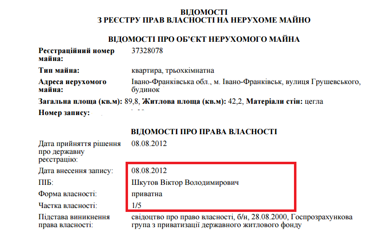 Найменш забезпеченим виявився керівник Івано-Франківської поліції Віктор Шкутов. Він особисто володіє лише гаражем та 1/5 квартири на вулиці Грушевського в Івано-Франківську. При цьому Шкутов не декларує свою частку, але згідно з реєстром нерухомого майна, квартира належить йому, його дружині Ірині Шкутовій та її родичам – батькам та братові.