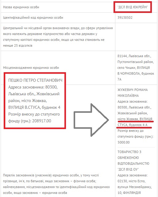 І це не єдиний зв’язок з Петром Пешком. Першими засновниками «ДСЛ Вуд Юкрейн» у рівних долях були Романа Жужевич та фінська компанія «ДСЛ Вуд Оу».