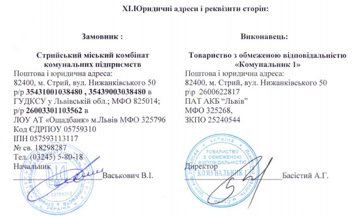 Договір між Стрийським міським комбінатом комунальних підприємств і «Комунальником 1» підписали 20 березня 2017 року. Обидва підприємства розташовані за однією адресою.