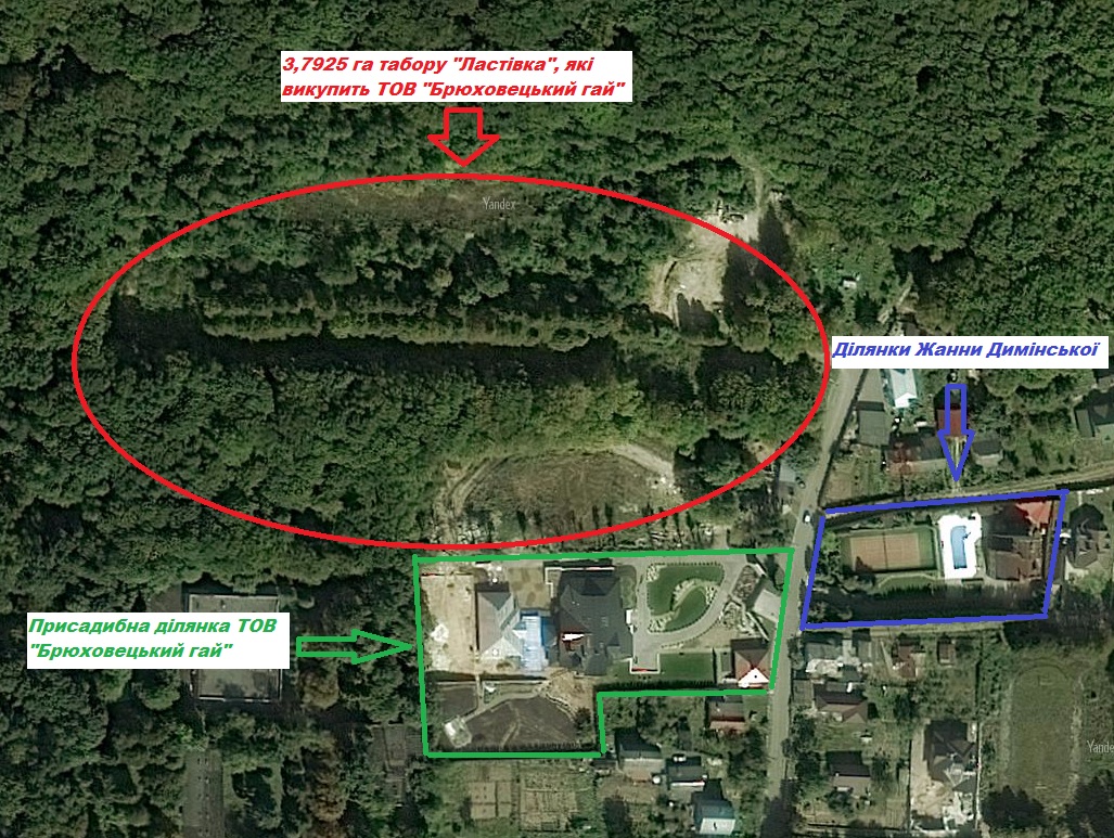 Ділянка перебуває в оренді ТОВ “Брюховецький гай”, якому в кінці березня Брюховицька селищна рада дозволила викупити цю землю без конкурсу для реконструкції нежитлових приміщень з будівництвом реабілітаційного центру та створення садово-паркового комплексу. Нагадаємо, мова йде про землі колишнього дитячого оздоровчого табору “Ластівка”. Будівлі табору “Брюховецький Гай” взяв в оренду у Фонду держмайна, а потім у 2013 році викупив за 961,4 тис. грн.