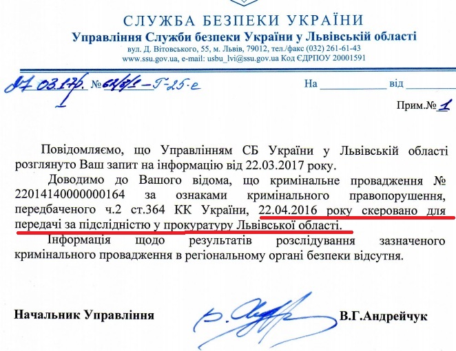 Окрім згаданого кримінального провадження, є ще одне, що стосується “Ластівки”. У листопаді 2014 слідчий відділ УСБУ у Львівській області розпочав кримінальне провадження за ознаками складу злочину, передбаченого ч.2 ст.364 ККУ (зловживання владою або службовим становищем). УСБУ стверджувало, що будівлі табору, які “Брюховецький гай” взяв в оренду у Фонду держмайна, оцінювались у 2 млн грн, утім “внаслідок неналежного використання орендарем державного майна його вартість за період оренди зменшилась удвічі”. У 2016 році справу передали в прокуратуру Львівської області.