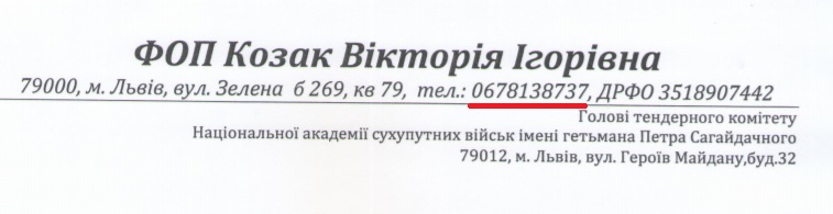 Мобільний номер телефону, який вона вказувала в документах для участі в торгах (0678138737), є недійсним. При дзвінку оператор повідомляє, що “цей номер не є дійсним, перевірте його ще раз”.