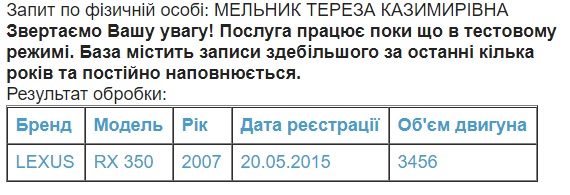 Згідно з цією інформацією, власницею автомобіля вона стала за два тижні до цього – 14 серпня. Lexus NX вона придбала у литовської компанії «Autodemas» лише за 226,7 тис. грн.