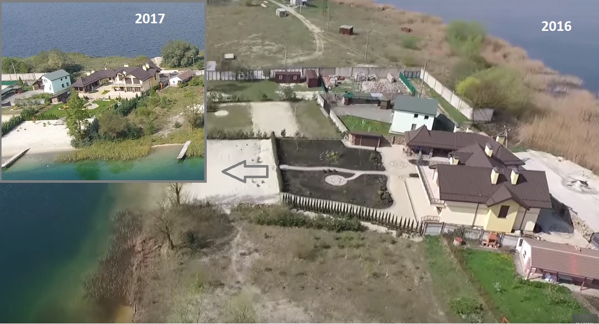Якщо вірити знімкам із супутників, розкішний будинок звели дуже швидко. Його добре видно навіть з іншого берегу водойми.