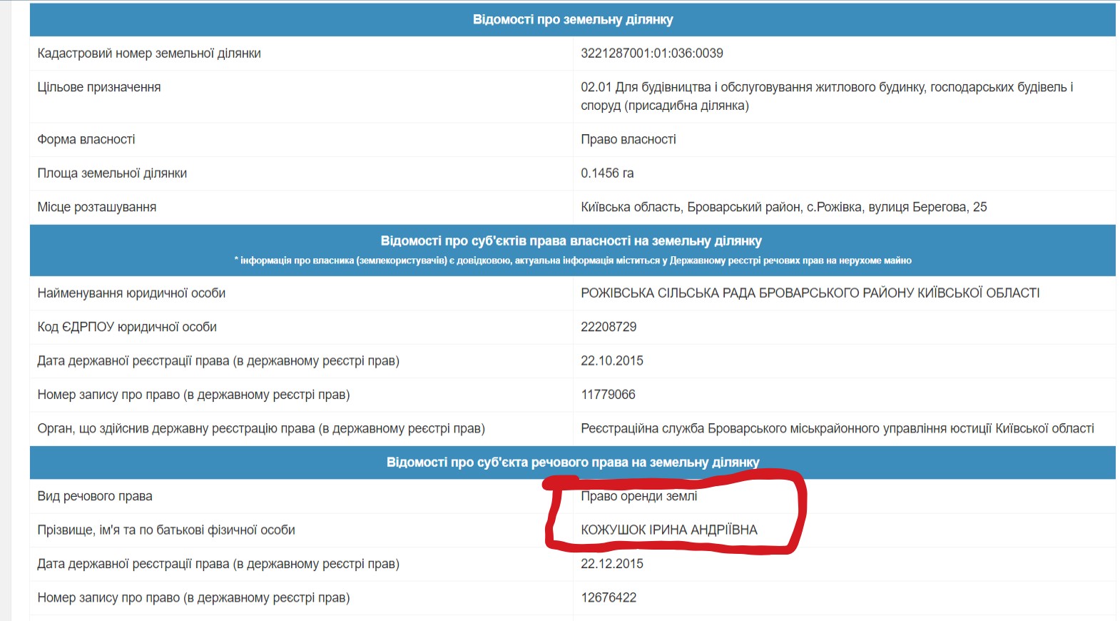 Ця ж адреса досі є офіційною і для приватного підприємця Лариси Куйбіди. За даними ЄДР, вона зареєстрована саме на вулиці Петра Панча.