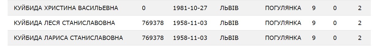 До речі, свого часу донька Василя Куйбіди та його перша дружина були прописані за однією адресою на вулиці Погулянка.