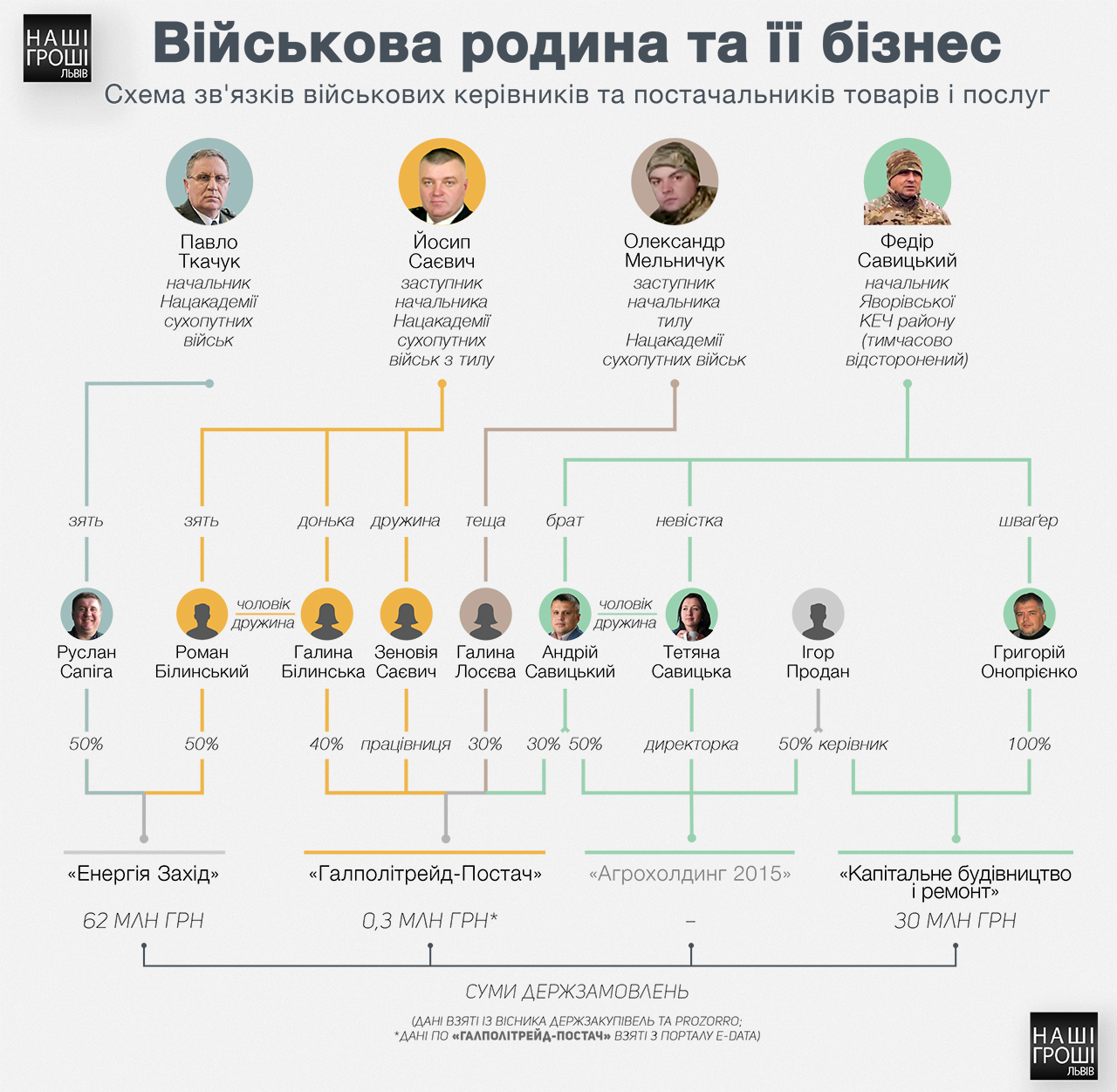 Цікаво, що робоча група, яка перевіряла дотримання вимог законодавства у Національній академії Сухопутних військ імені гетьмана П. Сагайдачного під час проведення закупівель товарів, робіт та послуг за державні кошти у 2016-2017 роках родинних зв’язків не знайшла.