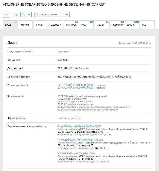ТОВ «Квінтекс» належить харків’янину Марку Винарському. А власницями ТОВ «Виробнича організація «Харків» є також харків’янки Віта Фелонюк та Валентина Якименко. Раніше вони всі троє були кінцевими акціонерами АТ «Виробниче об’єднання «Харків», яке вже припинило свою діяльність, а ТОВ «ВО «Харків» стало його правонаступником.