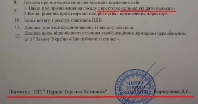 Таких відмов від підписання договорів – десятки. У листах до тендерних комітетах то від однієї фірми, то від другої, директори цих компаній зазвичай вказують, що відмовляються підписати договір, наприклад, через нібито допущені арифметичні помилки, або не надають додаткові довідки, які необхідні для підписання договору.