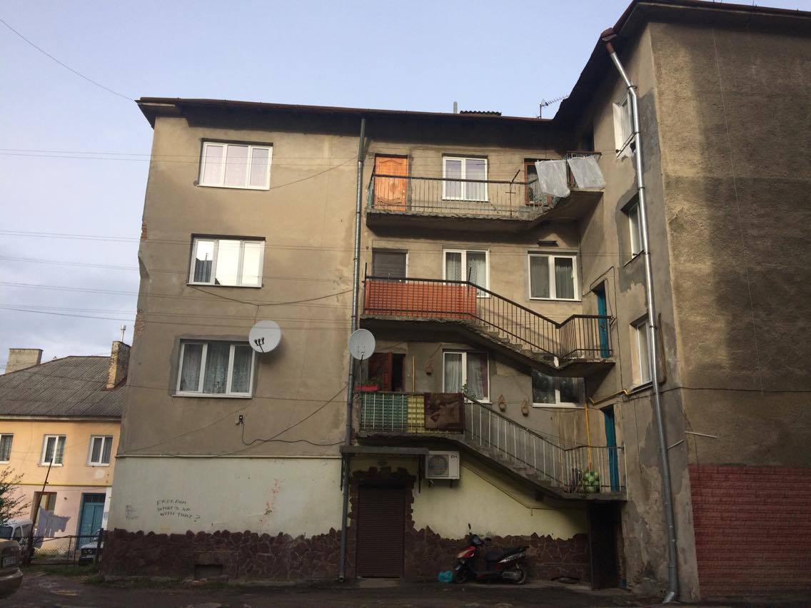 Сергій Дрогобецький живе в квартирі в цьому двоповерховому будинку. Сусіди повідомили, що його не має вдома
