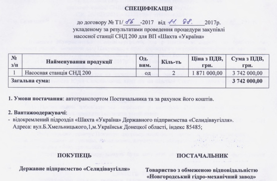 Вартість замовленої насосної станції становитиме 2,73 млн грн. У 2014 році «Львіввугілля» купувало насосні станції СНД 200 по 1,3 млн грн. У серпні 2017 року ДП «Селидіввугілля» замовило СНД 200 у вже згаданого виробника «Новгородського гідро-механічного заводу» по 1,9 млн грн.