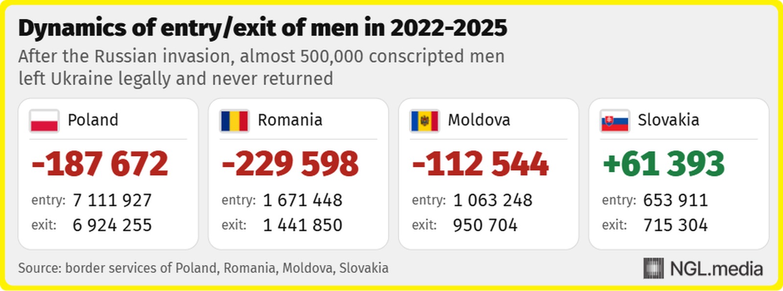 NGL.media received and analysed detailed data, received from Poland, Romania, Slovakia, and Moldova, on border crossings by Ukrainian men. Unfortunately, the border guards of Hungary refused to cooperate, which surely impacted the final results, although not by much.